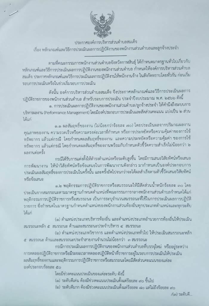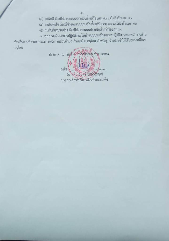 ชื่อเรื่อง : ประกาศองค์การบริหารส่วนตำบลสมเด็จ เรื่อง หลักเกณฑ์และวิธีการประเมินผลการปฏิบัติงานของพนักงานส่วนตำบลและลูกจ้างประจำ