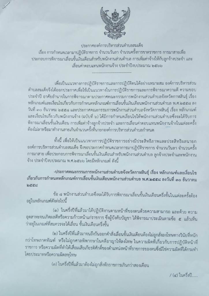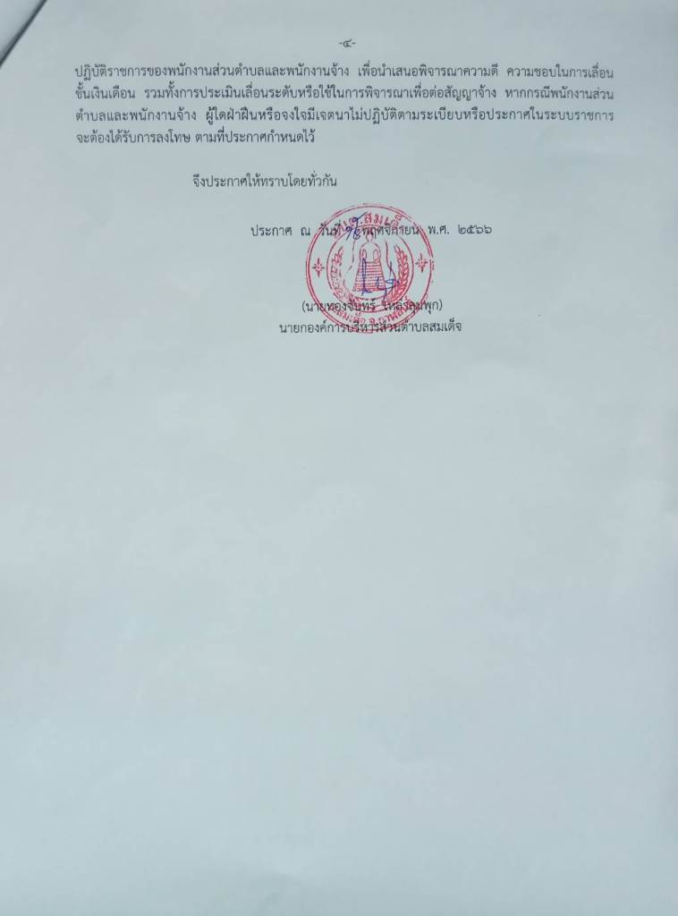 ชื่อเรื่อง : ประกาศองค์การบริหารส่วนตำบลสมเด็จ เรื่อง การกำหนดเวลามาปฏิบัติราชการ จำนวนวันลา จำนวนครั้งการขาดราชการ การมาสายเพื่อประกอบการพิจารณาเลื่อนขั้นเงินเดือนสำหรับพนักงานส่วนตำบล การเพิ่มค่าจ้างให้กับลูกจ้างประจำ และเลื่อนค่าตอบแทนพนักงานจ้าง ประจำปีงบประมาณ ๒๕๖๕